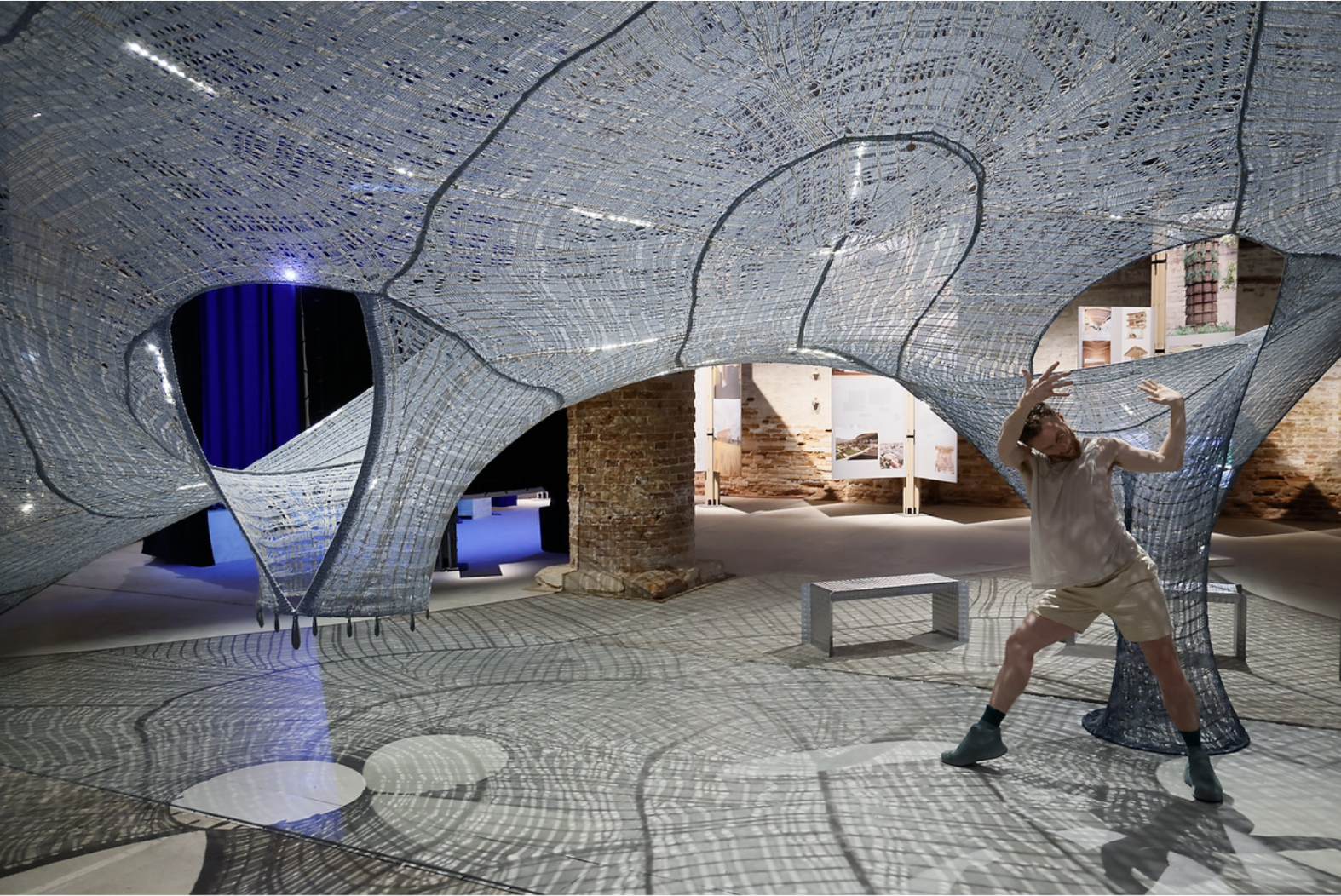 Riley Watts performing under Necto at the 19th International Architecture Exhibition in Venice (project by: Solid Objectives Idenburg Liu (SO-IL), Mariana Popescu, TheGreenEyl)