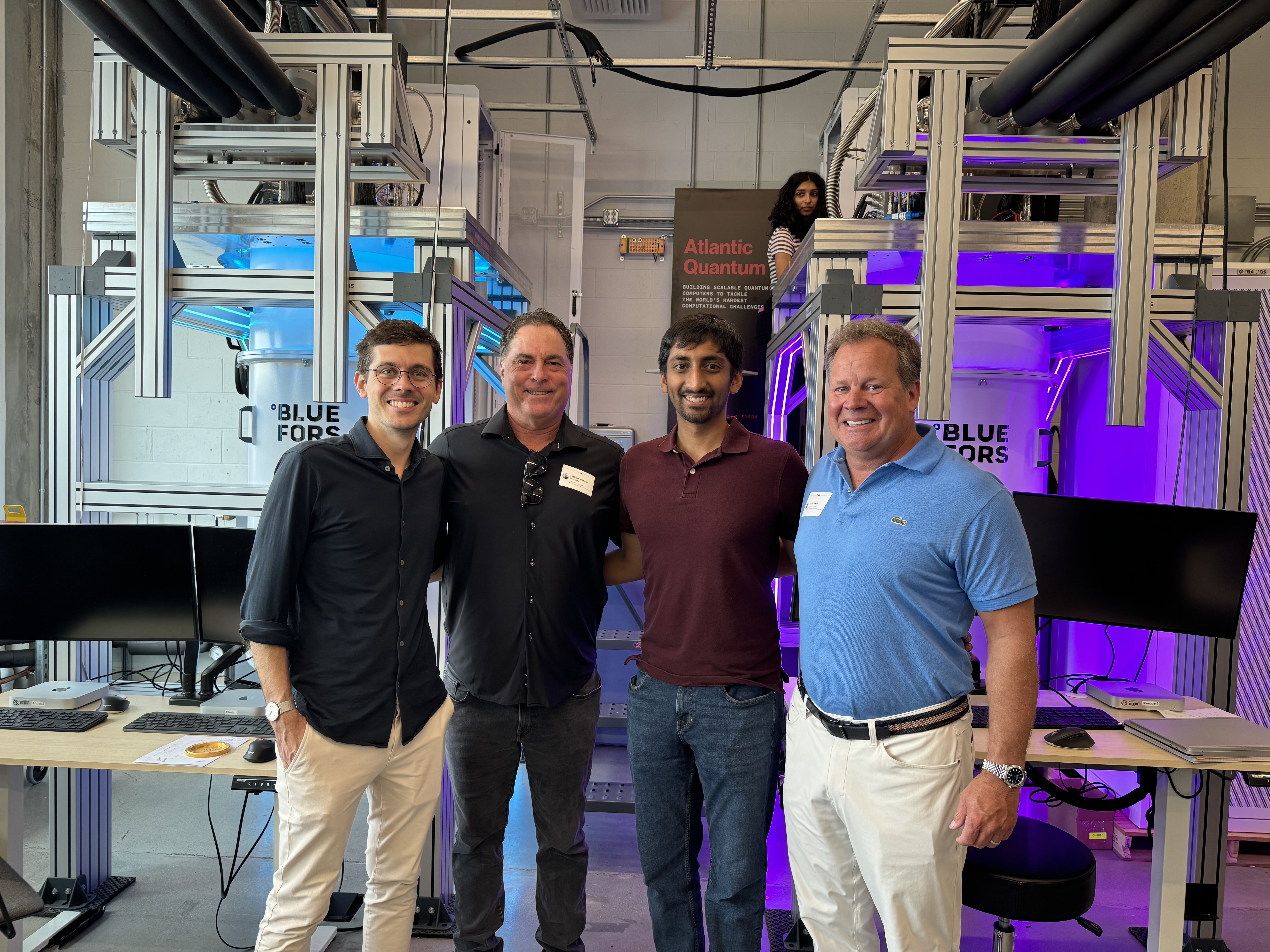 Photo Credit: Mack Shwab (Left to right: Shwab at dinner with the Atlantic Quantum founding team & Shwab visiting Atlantic Quantum’s facilities)